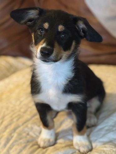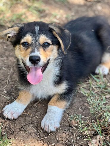 Auggies are a cross between a Corgi and an Australian Shepard. They make great family pets as well as being very savvy on the ranch and around livestock. They love kids and truly take the best of each breed’s characteristics.